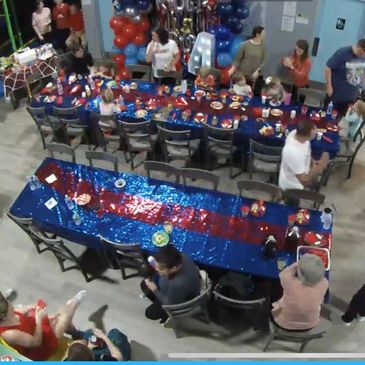 **Party room has limited seating, and we require all guests, parents and friends of guests, remain in party room with door closed during the private part of the party. Please keep this in mind when you are inviting. We recommend private facility rentals for parties with more than 24 children and guests.
